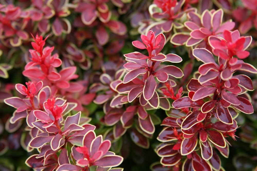 Листья большие, розово-фиолетового окраса с золотистым узким окаймлением.