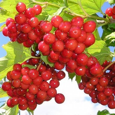 Саджанець калини Канадської – декоративно-плодовий листяний чагарник або невелике деревце, яке поєднує високу декоративність і корисні плоди. Рослина формує сильнорослий, добре розгалужений кущ із широкою кроною. Навесні калина рясно цвіте білими суцвіттями, що ефектно виглядають на фоні зеленого листя. Восени рослина прикрашається численними великими ягодами насиченого червоного кольору, які зібрані в щільні грона.